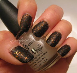 I didn't think of using Seche Vite because I wanted to use the Matte Magic top coat on top and test its wearability. Matte Magic goes on glossy but dries down matte. It doesn't protect the polish though, on the contrary I found that the polish was easily dented. The topcoat seemed to wear off easily too with just 1 coat - I would try 2 coats next time to see if it wears better. Or, maybe 1 coat Seche Vite (glossy) on top then 1 coat of Matte Magic on top...hmmm